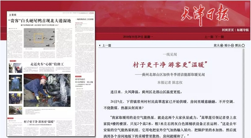 天津日?qǐng)?bào)和山東公共頻道:供暖用上空氣源熱泵,節(jié)能又環(huán)保!