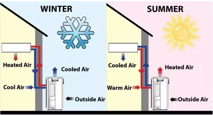 In the summer the process is reversed and the pump will act as an air conditioner, absorbing the heat from within your home and transferring it outside.