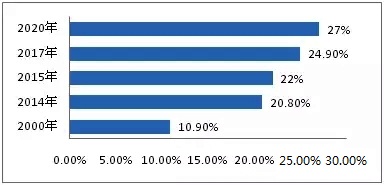 圖2 我國(guó)電能占終端能源消費(fèi)比重